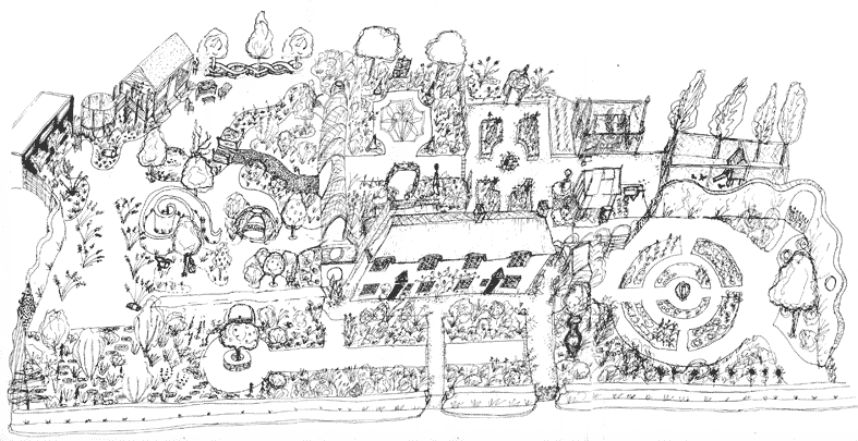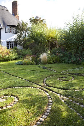 In 2009 we removed the last 5 poplars to the left of the Pavilion and created the 20m Celtic Racetrack (No.12 on the plan) in spring 2010. The Celtic racetrack as